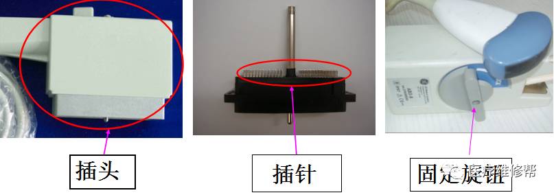 探头组件是通过插头与B超机连接的,而插头的连接由里面的插针与B超机的插座相连接的,常见的插针数量有:24P、96P、156P、260P等等。