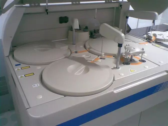 全自动生化分析仪是科技进步的时代产物,它具有操作简单、检验速度快、结果准确等优点,目前在大部分医疗单位的实验室得到了广泛运用。它的特点是把取样、加试剂、混匀、恒温反应、比色测定、数据处理以及清洗加样针、比色杯等步骤全部进行自动化操作的仪器,它代替了原来手工操作过程