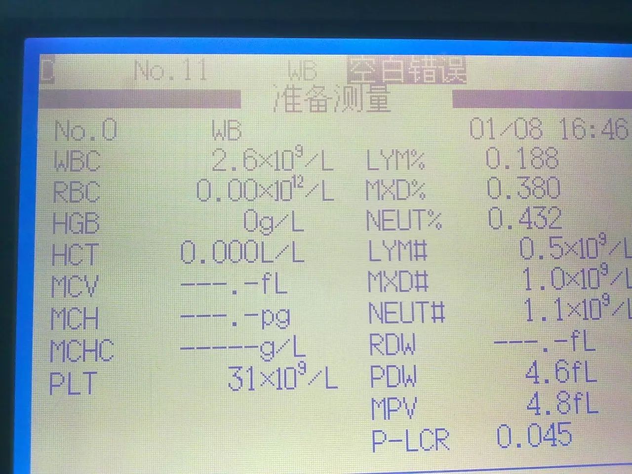 故障一:RBC/WBC/PLT计数错误
