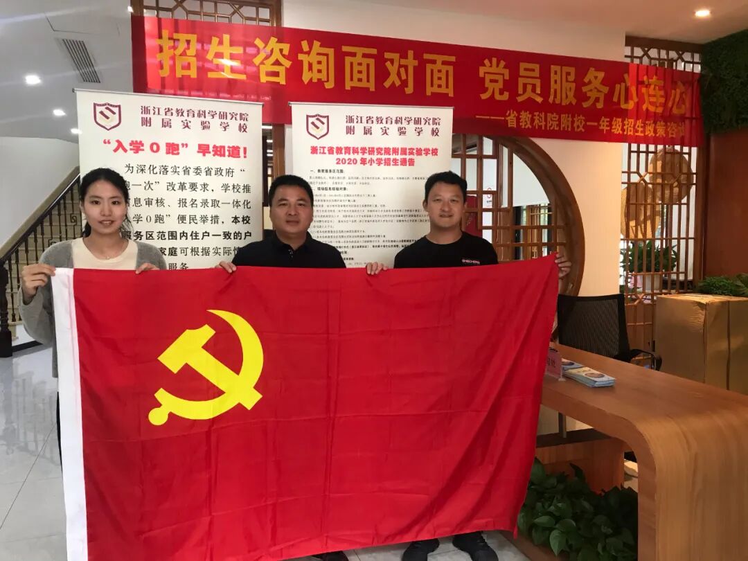 6月20日下午一点半,浙江省教育科学研究院附属实验学校2020年一年级入学现场咨询在附校门口和闸弄口社区居民委员会同一时间准时开始。