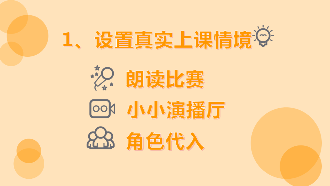 张老师在课堂上建立了“小小演播厅”,组织了同学们进行朗读比赛角色代入表演,让同学们在“演播厅”中展示自我、提升自我。