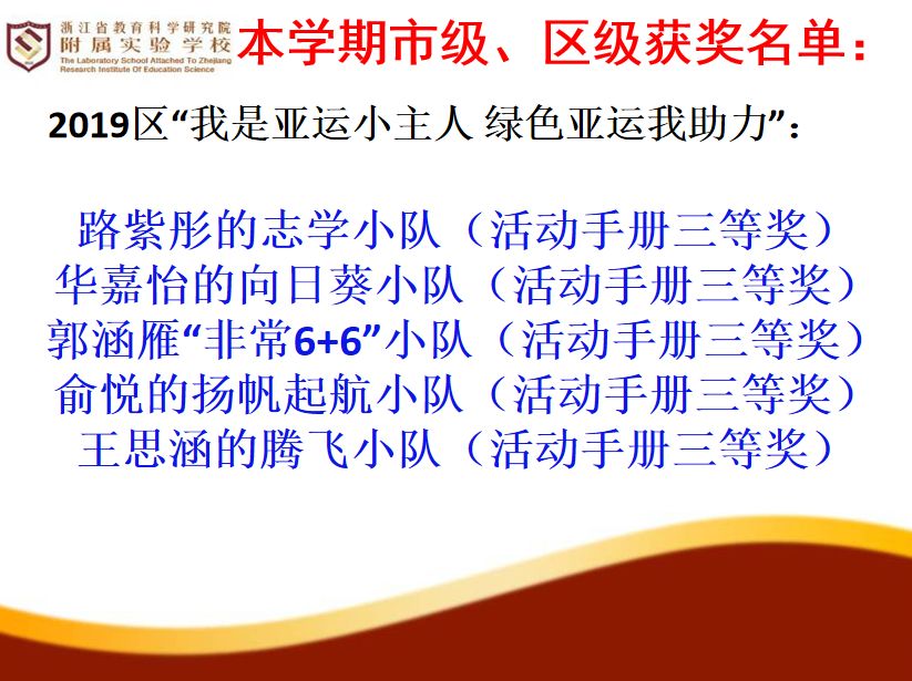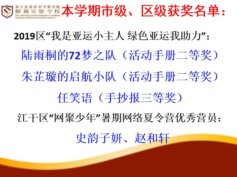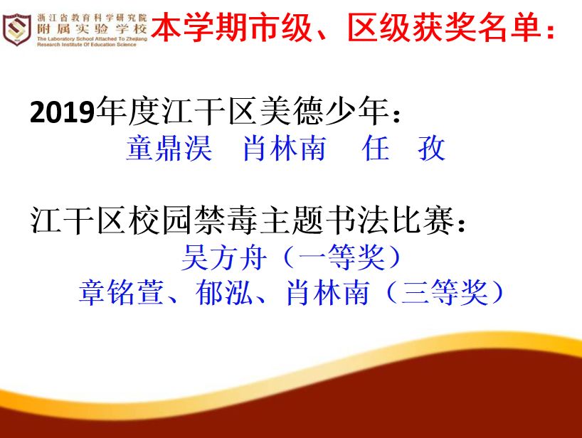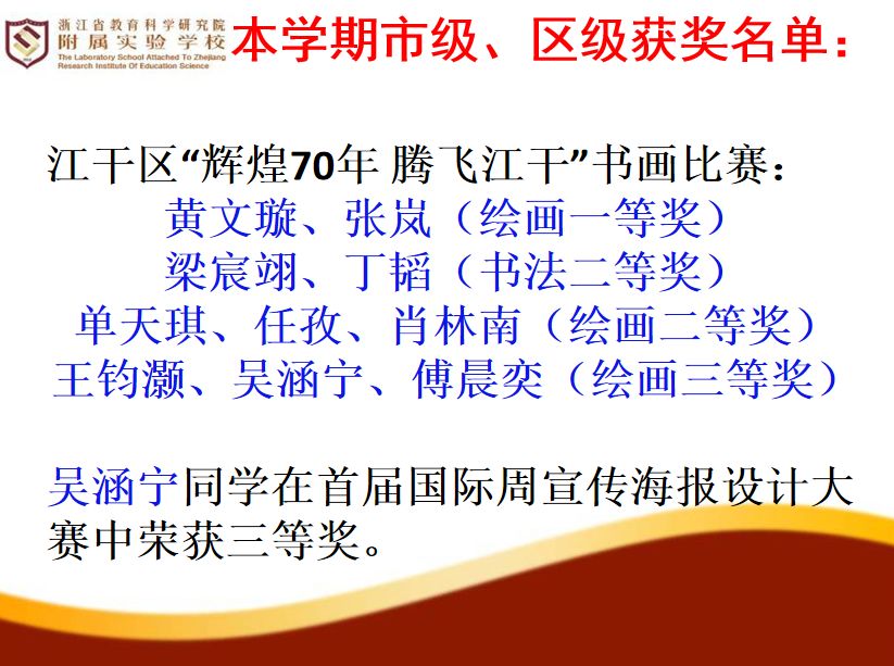 恭喜以上获奖同学及班级,也感谢我们附校老师辛勤地耕耘,无私地奉献!希望在新的学期里我们附校学生能够再接再厉,勇创佳绩!