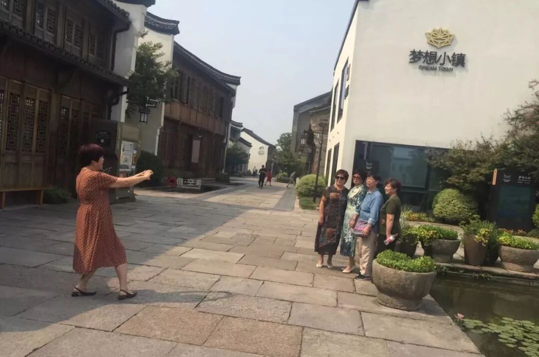 退休教师们在梦想小镇里悠闲散步、闲适交流,相互与老同事畅谈着自己的退休生活。这里走一走,那里拍一拍,一上午的轻松游览,让退休教师深刻领略了梦想小镇的独特魅力。