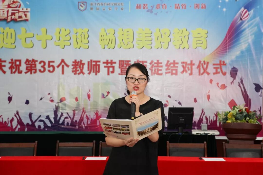 新教师代表蔡心仪上台发言,表示自己会虚心求教,努力钻研,争取在最短的时间里站稳讲台。