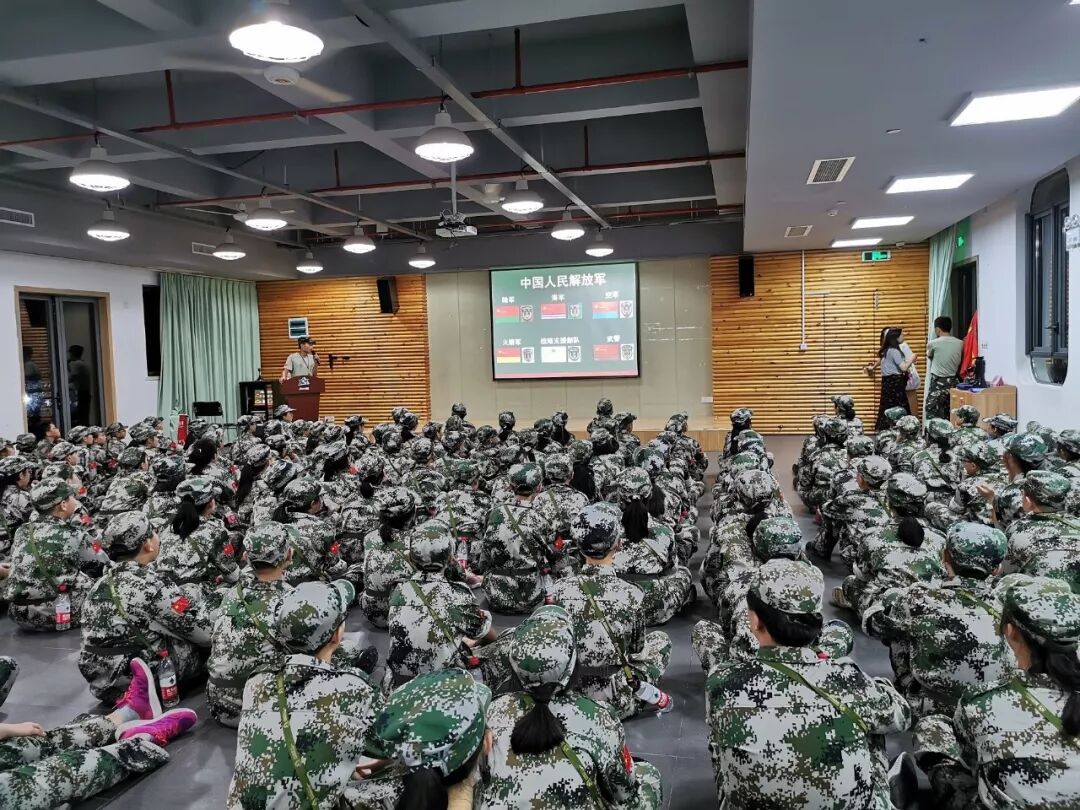 船头爬网,队员徒手攀爬“逃生网”,锻炼队员的平衡能力,身体的耐力和力量以及肌体的抵抗能力。下午烈日高照,同学们没有因此退缩,而是开始了山野拉练。山野拉练是为了锻炼小军人钢铁般的意志,每人一瓶矿泉水,小军人们一个个迈着轻快的脚步向山上挺进,整齐的队伍犹如一条长龙。经过了一整天的训练,夜晚教官为大家带来了一场生动有趣、浅显易懂的军事知识科普讲座。他为同学们讲解了现代战争的特点以及现代武器的发展。每当讲解到一些专业术语时,他都会用简单易懂的方式帮助同学们理解。同学们认真聆听,十分珍惜这次来之不易的学习机会。转眼,四天的始业教育即将走向尾声,在这几天里,我们流下了许多的汗水,每天早晨六点起床,用自己的努力挣取营元,平常不爱喝水的同学,来到这营地也几乎每天5瓶以上。经过这几天的训练,同学们都有了很大的改变,所有的行为习惯已经和第一天大有不同——声音变得响亮了,步伐变得整齐了,生活习惯也越来越好了,一个个走起路来也雄赳赳气昂昂,精气神十足!在始业教育结束前,我们还会举办创意十足、丰富多彩的联欢晚会以及始业教育表彰大会,为同学们的始业教育画上喜人的感叹号。