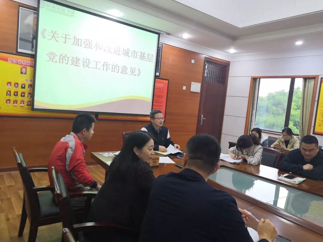 5月15日下午,浙江省教育科学研究院附属实验学校党总支召开全体党员会议,全体党员深入学习《关于加强和改进城市基层党的建设工作的意见》,罗志强书记主持解读并部署《关于落实<中国共产党支部工作条例(试行)>规范党的组织生活制度操作办法》。