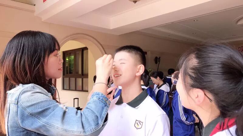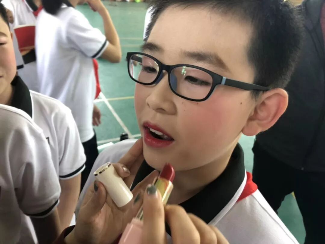 附校老师和家长也早起为参演的学生画上精美的舞台妆