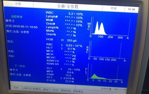 首先跟老师电话沟通,可能是计数池问题或者体积计量管问题导致RBC,WBC堵孔或者气泡。