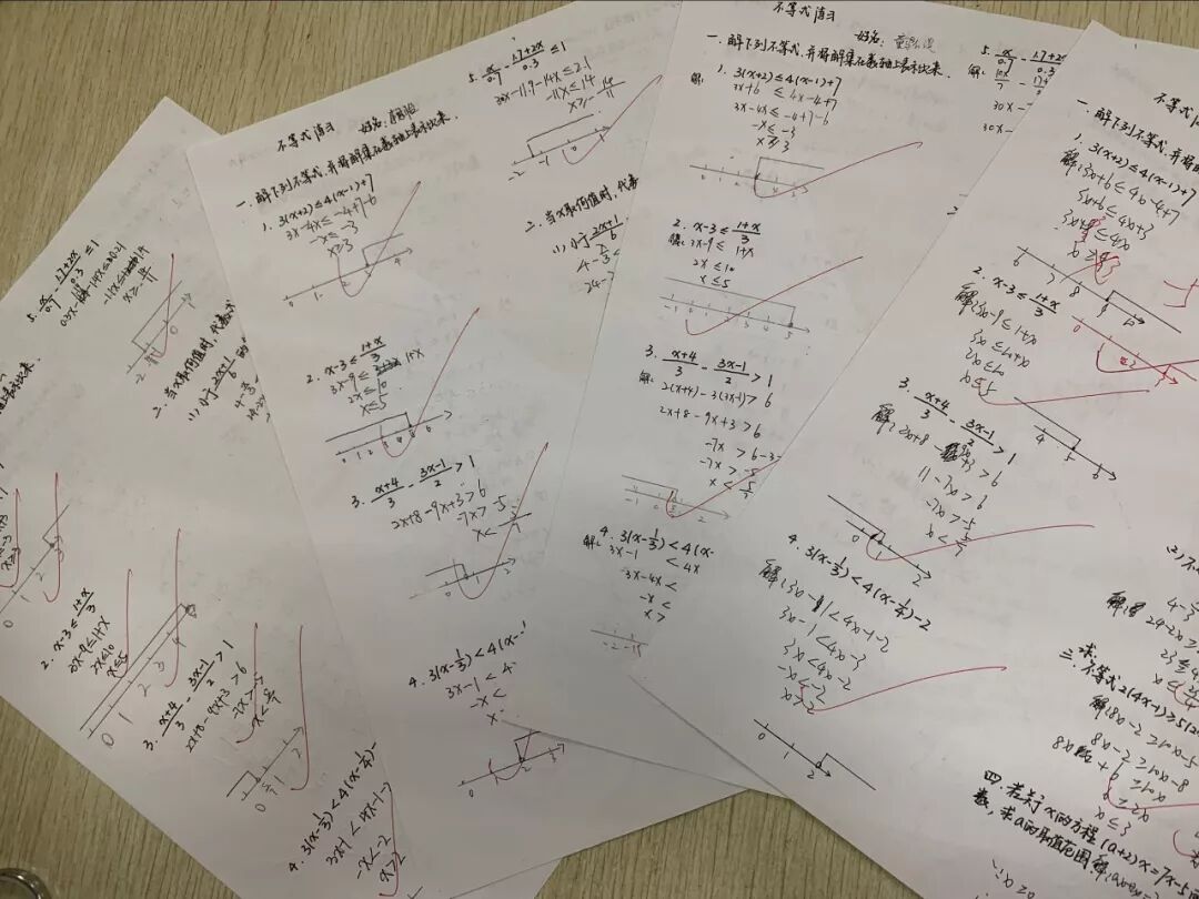 八年级同样在最重要的“计算能力”上进行了强者角逐,在同学和老师的组织下进行了一元一次不等式的计算竞赛。不等式较方程而言是从等量关系到不等量关系的拓展,通过此次不同不等式的问题解决,帮助学生总结简解法,培养学习数学的方法提高运算能力。
