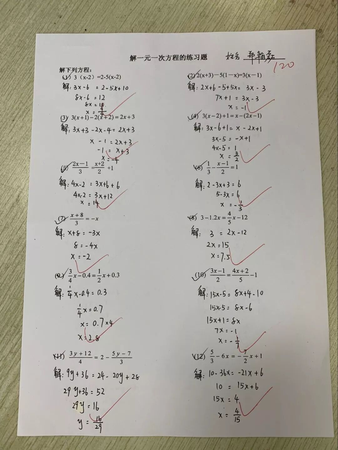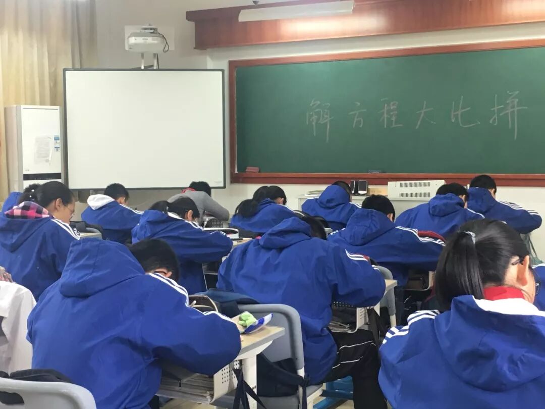 七年级同学进行了“解方程大比拼”。刚进入初中阶段的他们越来越感受到数学中“运算”的重要性。一元一次方程是他们接触的第一类方程,同学们也信誓旦旦能打败困难。在此次大比拼中,他们运用运算法则,探究本质原理,将方程计算落到实处。看,每位孩子都聚精会神地参与活动,做到不错算,不漏算。