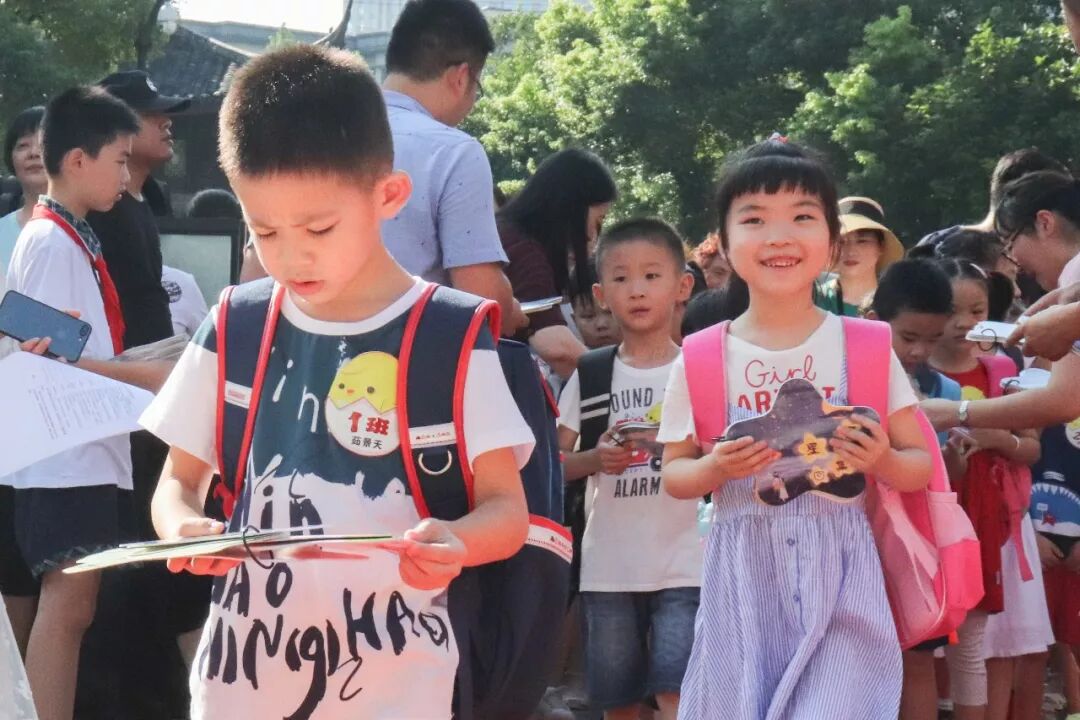 校门口,唐宇红校长等校领导为新生颁发“星享集”,记录从入学第一天开始的点点滴滴,记录孩子的成长过程,同时,也将为“附校百星”的评比做铺垫。