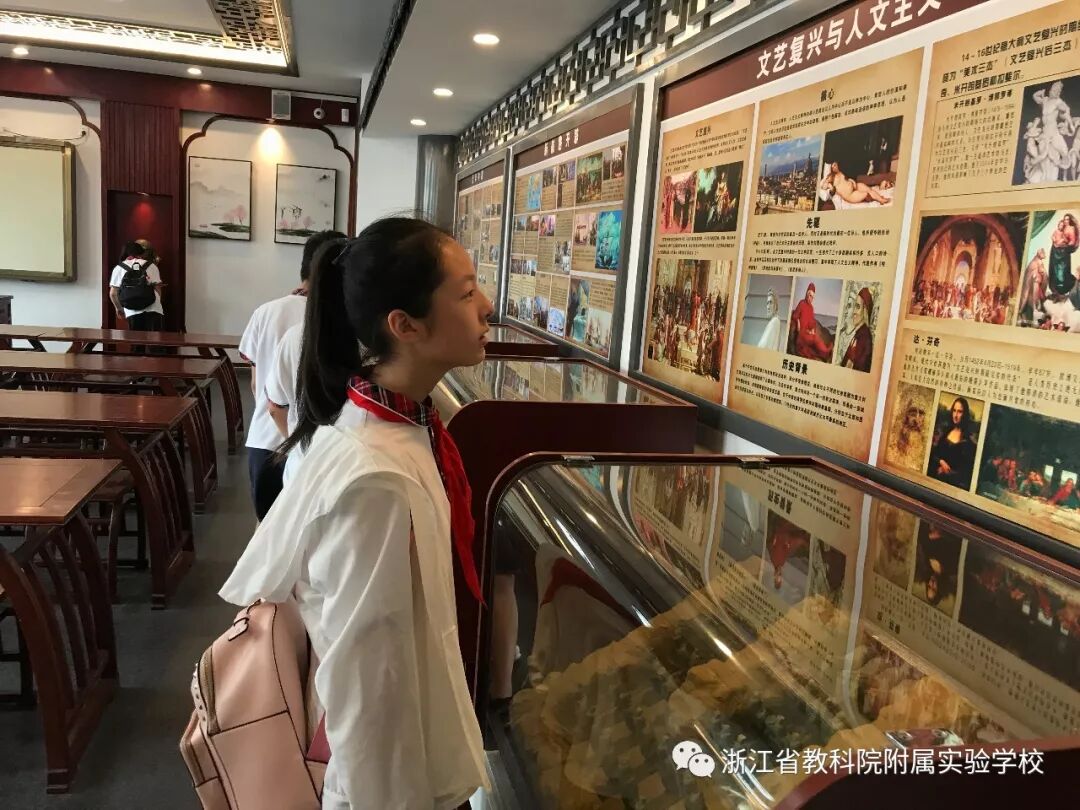 历史教室墙面上的历史材料深深吸引了我们,驻足细品,津津有味。