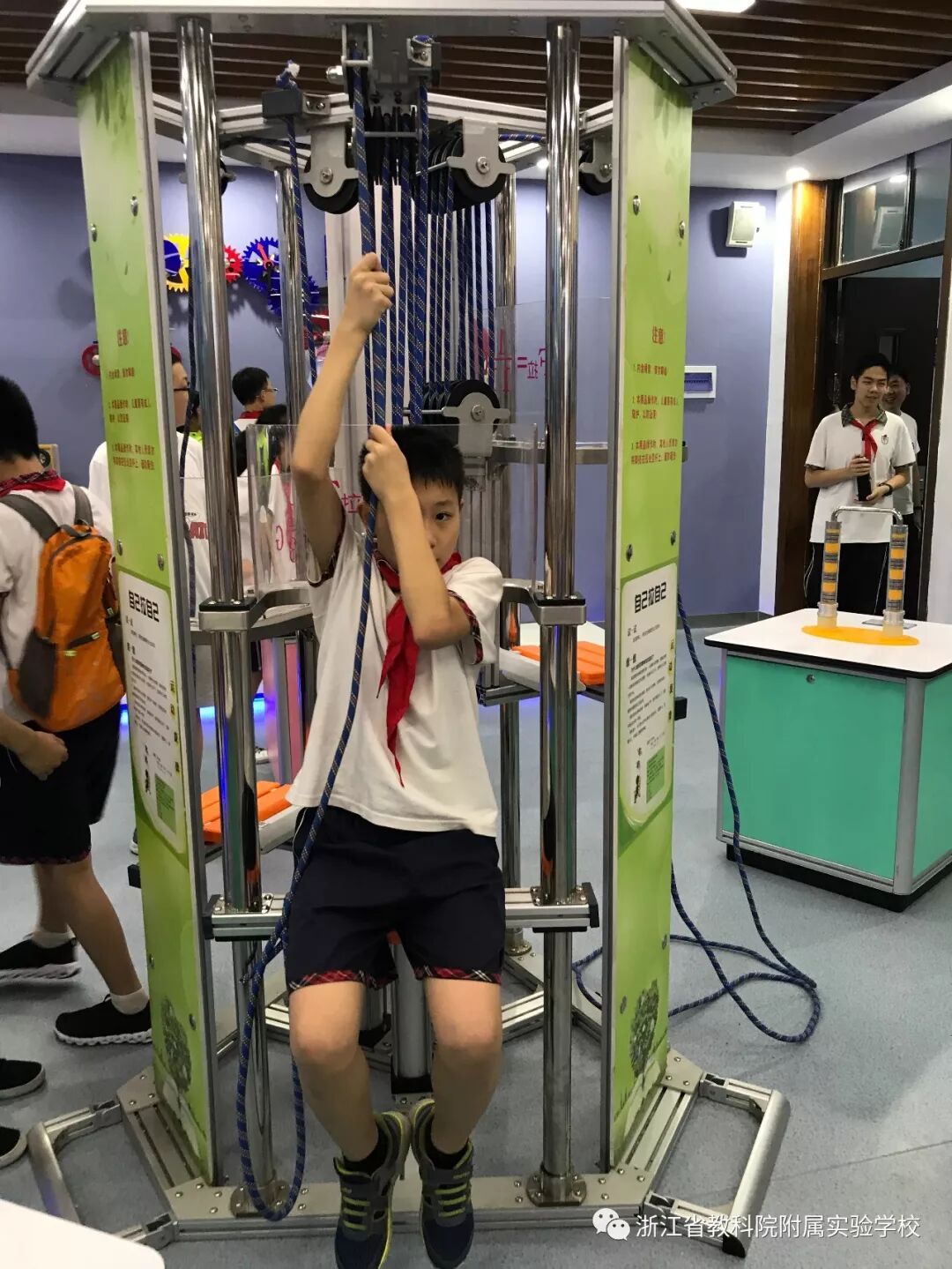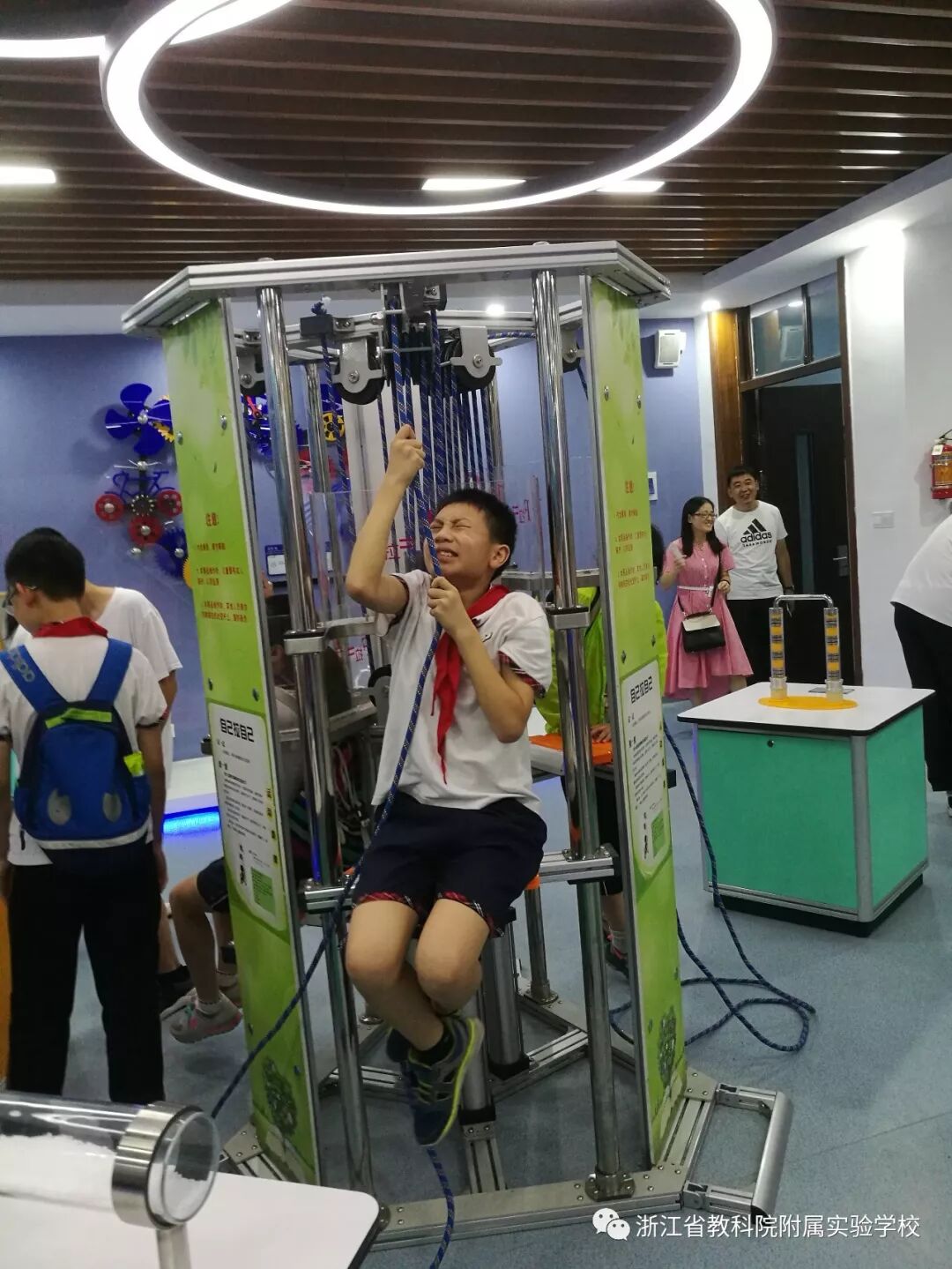 下午一点半左右,我们到达了学军中学紫金港校区,尽管一路的颠簸使我晕眩,但一进校门,便感到空气的新鲜及环境的秀美,有一种很特别的气息围绕在身边。校园里很安静,这里的一切都让我心向往之。让我感触最深的是去参观科技类教室,在这里我们可以看到很多设备,这些展品有互动性、趣味性,我们纷纷“玩”了起来,体验科技的魅力!