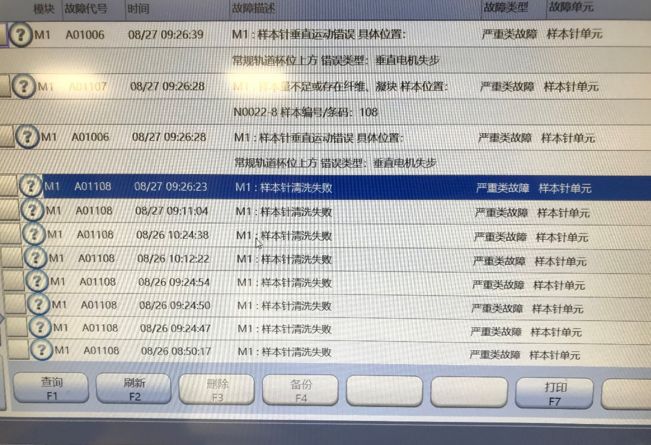 对于仪器的故障点,报警信息是我们需要进行观察的,上面的?我们可以点开看到报警的原理,方便我们申请配件找到故障点。