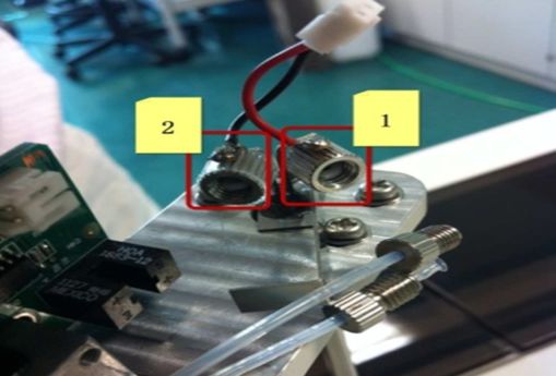 仪器样本双针因为出现过撞针,已经出现弯曲,所以我们需要进行样本针的更换,首先取下摇臂外壳,只需拧松螺丝即可。随后拧松,前端还有一个一字的螺丝拧下,注意可能有小于液体渗出,里面拥有垫片。我们根本1,2进行更换。