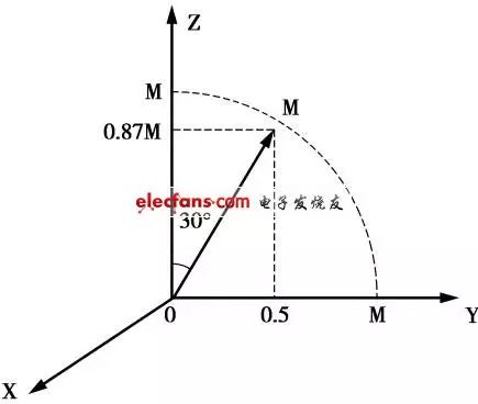图5-25 30度射频脉冲时的磁化矢量及纵向磁化矢量