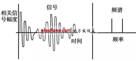 振幅随时间而降低的正弦信号经傅里叶变换后用窄细的钟形波为代表。由于振幅演变的起始值取决于横向磁矩,而该磁矩又取决于特定组织体素(voxel)中受激励原子核的数目,因此波峰高度(信号强度)代表质子密度N(H),如质子群为纯水且主磁场又很均匀,则质子群共振频率只有1个,钟形波为一直线。如由于质子群的自旋-自旋作用及磁场不均匀性的影响,在频率域座标上就不是一直线,而表现为一钟形波,其宽度与T′2成反比,即钟形波越宽,T′2越短,而钟形波最宽处为其共振频率。