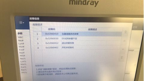 正常做样本时报液路状态异常,故障代码:0X32060410,点击故障消除无法消除,关机后开机初始化同样会报警。