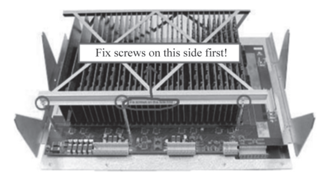此故障和之前的故障比同样是多故障点出现问题。这次问题初始虽然排除了发射板的问题,但是通过排除了电源的问题后再继续检查发现发射板也是存在故障,而像Voluson E8 这类机器,发射 / 接收板比较多,排查起来也没有什么简便的方法,因而会有一些麻烦,有几点要注意的是安装发射 / 接收板的固定架时一定要先如图所示安装螺丝短的那一面 [3],如图 3所示。