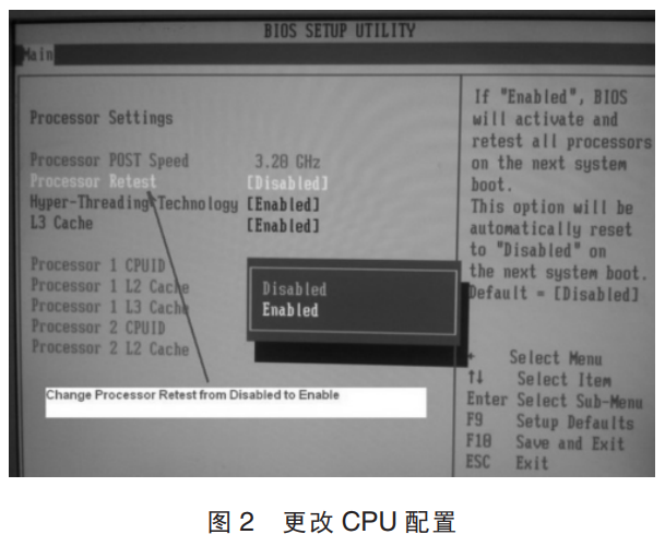 (3)processor retest后BOIS配置显示见图3,CPU2已经重新配置成功。