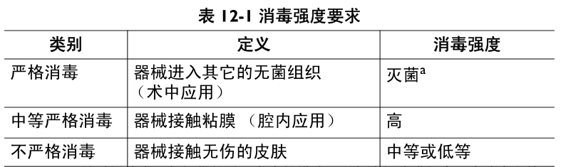 要选择合适的消毒剂,首先必须根据器械类别来确定所需的消毒强度(表 12-1)。