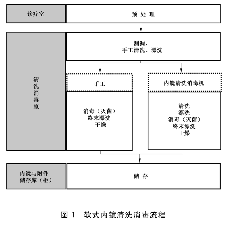 6.1.3内镜清洗消毒应遵循以下流程(见图1)。