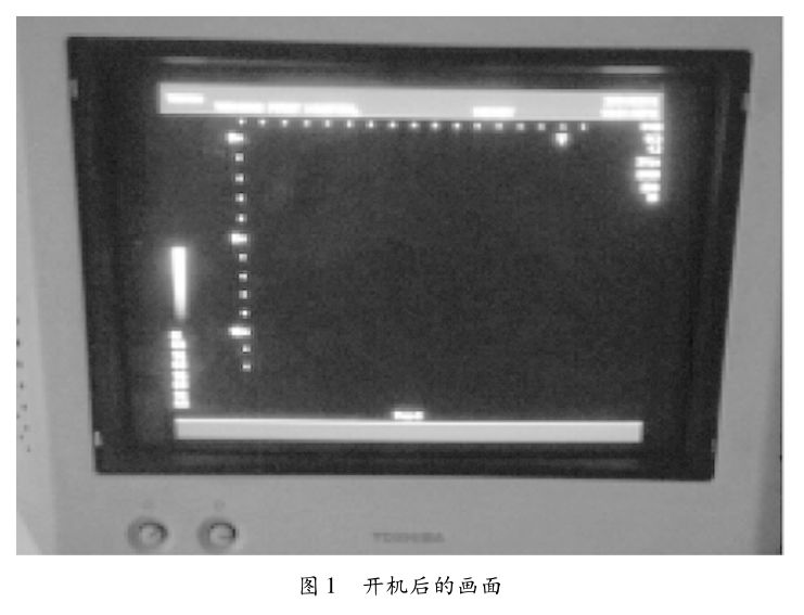 机器早上开机后发现没有扇形波(见图1),切换到另外一个探头时,故障依旧,排除探头问题,重点检查里面的电路板,打电话咨询厂家,厂家工程师提议携带电路板过来排除,当时由于服务费过高,先自行维修判断。