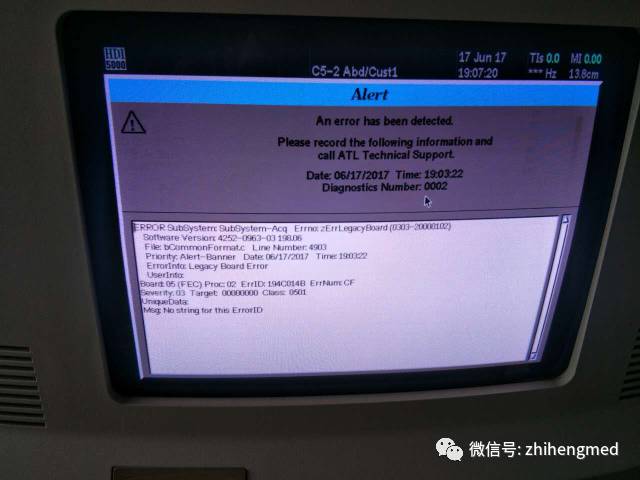 HDI5000机器开机偶发0002报错,故障时超声图像区无回声。