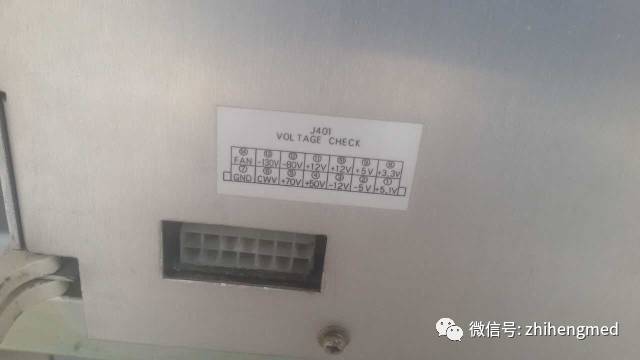 该机器电源由AC和高低压部分组成,高低压部分包括PB1(供应3.3V,5V及12V低压),PB2(供应5.1V及高压部分)以及一块连接母板,起到分配电压的作用,机器启动时,电压通过AC电源将电压分成供给显示器的12V及输送给连接母板的多项电压,然后由母板输送至高低压板进行转化后再通过母板往机箱供电,现在大部分高低压无输出,可能为高低压板同时故障或连接母板以及AC电源供电不足的原因导致,同时注意到机器开机后,连接母板上的风扇并无启动,而此风扇应该是由AC电源通过母板直接供给的,由此可推断为母板或AC电源存在故障,拔掉AC电源与母板接线用万用表直接检测AC输出,发现只能检测到一个20V左右的电压,这明显存在异常,于是更换AC电源后机器正常开机。