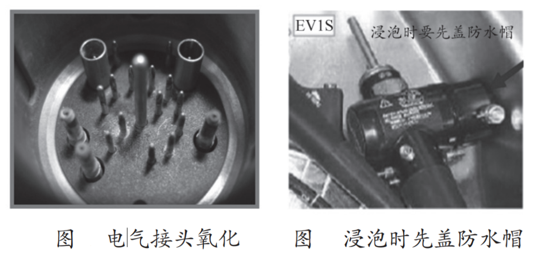 另外,如果胃肠镜需要完全浸泡在水中,电气接头必须安装上防水帽,如果没有安装防水帽或者防水帽安装不到位会导致内镜严重渗水,后果非常严重 。见下图。
