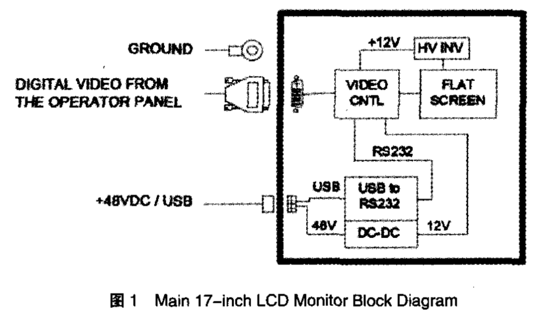 根据故障现象判断机器显卡输出正常,是显示器自身的问题。首先,保存几张图片,接着检查显示器的POWER/USB CABLE和HDMI CABLE,并且将HDMI CABLE连接到外接显示器,发现显示的图像正常,说明HDMI CABLE完好,输出信号正常。然后,将显示器的后盖打开,根据Main 17-inch LCD Monitor Block Diagram(图1),将内部的接线逐一重新连接。