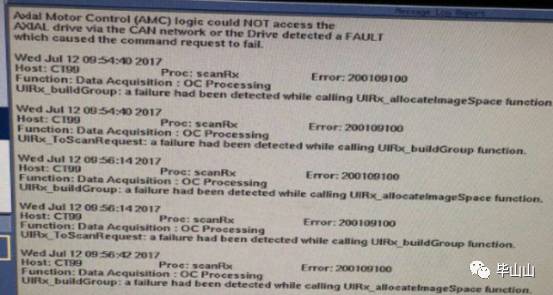 一.故障现象:机器多次突然断电后,开机重启后,机器不能使用,按曝光命令后,机器不能曝光。查看错误日志如下图1