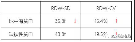 所以我们可以利用MCV等参数初步判断小细胞性贫血,而对于红细胞特征相似的缺铁性贫血和地中海贫血,我们可以通过联合检测RDW-SD和RDW-CV来判断红细胞的异质性,再结合红细胞相关参数对小细胞性贫血进行鉴别。