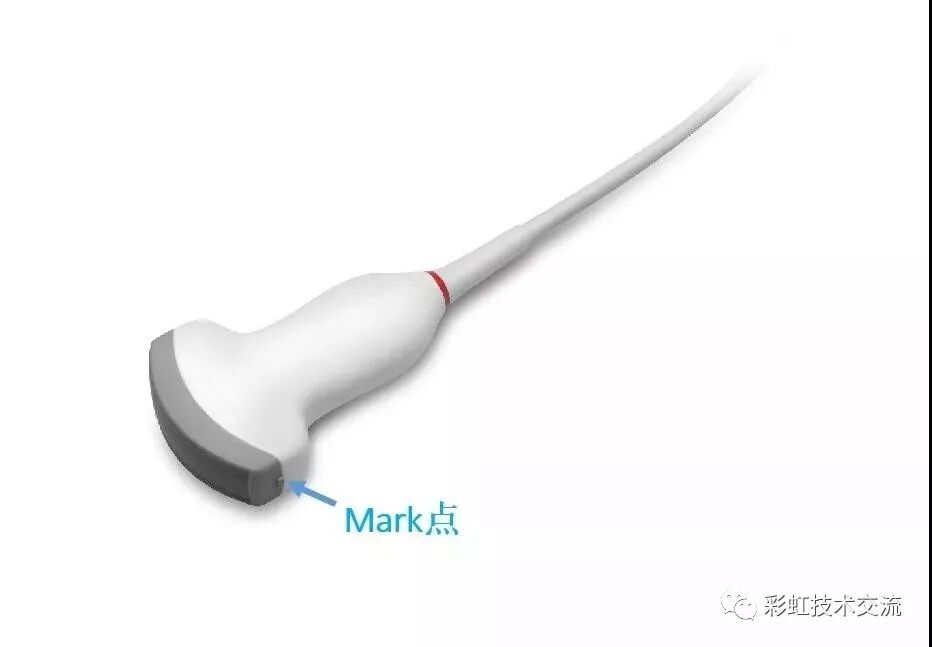 Mark点:每一把探头都有一个mark点,是用于定位方向, mark点一侧始终对应着图像S点(图像箭头标识)一侧。