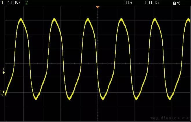 只要经过上述的这三四步,你就可以把示波器的核心功能应用起来了,可以用它观察单片机系统的各个信号了。比如说上电后系统不运行,就用它来测一下晶振引脚的波形正常与否吧。需要注意的是,晶振引脚上的波形并不是方波,而是更像正弦波,而且晶振的两个脚上的波形是不一样的,一个幅值小一点的是作为输入的,一个幅值大一点的是作为输出的,如图7所示。