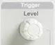 这就是因为示波器的触发没有调整好的缘故,那么什么是触发呢?简单点理解,所谓触发就是设定一个基准,让波形的采集和显示都围绕这个基准来。最常用的触发设置是基于电平的(也可基于时间等其它量,道理相同),大家看下上面的几张波形图,在左侧总有一个T和一个小箭头,T是触发的意思,这个小箭头指向的位置所对应的电压值就是当前的触发电平。示波器总是在波形经过这个电平的时候,把之前和之后的一部分存储并最终显示出来,于是就能看到图4、5所示的波形。如图6所示,我们可以看到,无论如何波形也不会经过T所指的位置,即用永远达不到触发电平,所以失去了基准的波形看上去就不稳定了。怎么调节这个触发电平的位置呢,在示波器面板上找一个标了Trigger的旋钮,如下图,转动这个旋钮就可以改变这个T的位置了。