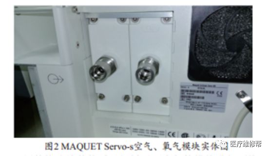 首先判断是否为气体模块故障。造成气体模块故障的主要原因是,气体模块内部随气体进入杂志,从而导致流量传感器故障。MAQUET Servo-s的气体模块分氧气与空气模块,见图2,两个模块可以独立拆卸和更换。