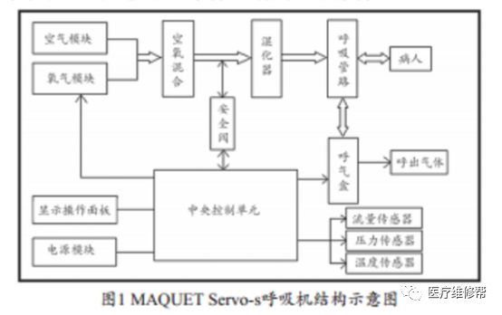 不同型号的呼吸机,其结构、原理也存在异同点。根据MAQUET Servo-s型呼吸机的结构示意图(图1)所示,依次检查可能造成极其故障的部分,查找故障原因。