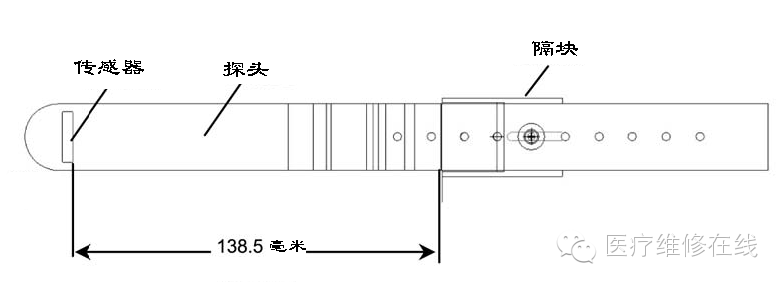 2. 准备好温度表: 如图所示在温度表探头上安装隔块。