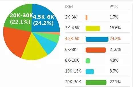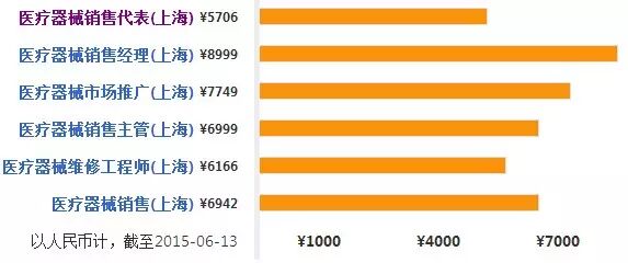 所有医疗器械人员平均工资:10430元/月,各段位工资收入比例如下表所示:
