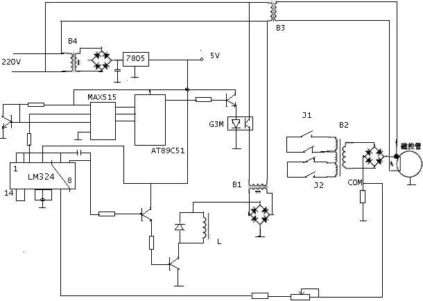 LM324是四运放,L就是加在磁控管中的作为电磁的线包,限流电阴同时又作为电压采样电阻,将阳极电流馈入与89C51给出的控制信号在LM324中进行比较放大给电磁线包以提高管子功率输出的稳定性。