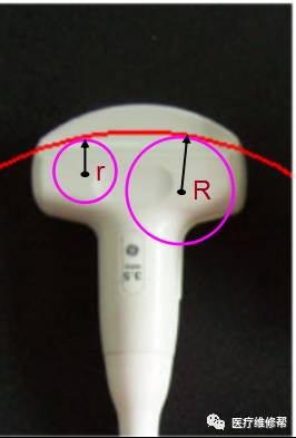 曲率半径是指由探头的晶片阵列构成弧线的最大内切圆半径,如图。