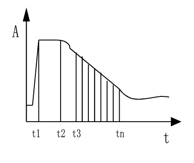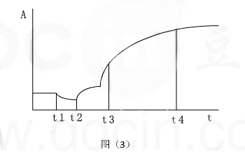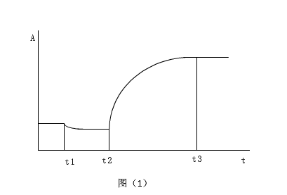 在一定的反应时间内,反应速度与底物浓度的一次方成正比,由于底物在不断的消耗,因此整个反应的速度在不断的减少,表现为吸光度的增加(或降低)速度越来越小,这类反应达到平衡的时间很长,理论上可以在任意时间段进行监测,但由于血清成份复杂,反应刚启动时反应较复杂,杂反应较多,经过一段延迟时间才能进入稳定反应期,必需在特定时间段内进行监测,各试剂商对这段时间有严格规定。如图(3)。