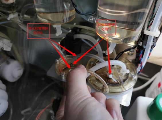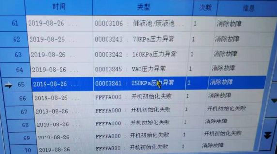 2.现场开机发现还报警废液池故障,WC1废液池无法有效排空(故障代码:00003107),导致废液倒灌到缓冲瓶,正负压切换不顺畅。无法将废液有效排除。