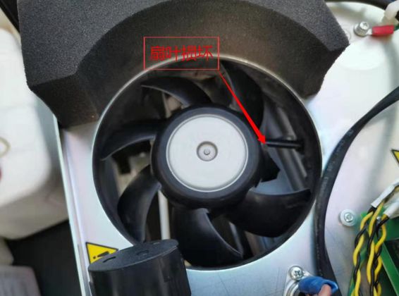 气源组件散热风扇,有一片扇叶损坏脱落,在工作运行时风扇无法达到平衡,造成噪声过大。需更换扇叶。