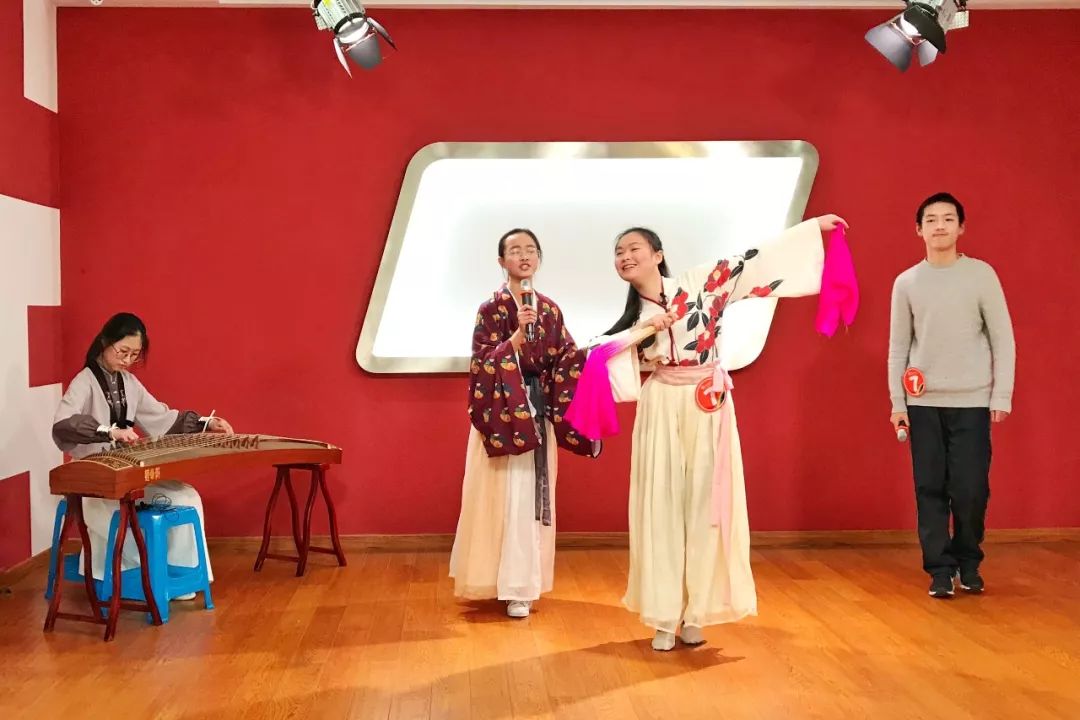 再看!7号选手季雨欣、蒋佳辰、王旭霞、童鼎淏四人用古筝与舞蹈和着歌声,在翩翩扇舞中道出了古风古韵的优雅与传承。