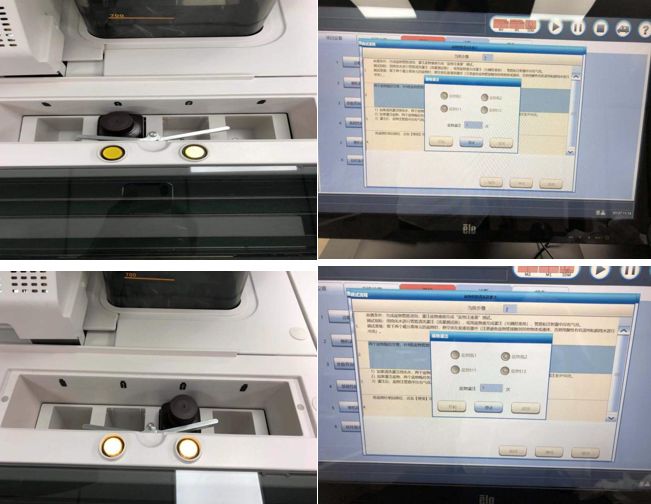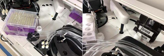 8、把悬空的两根底物头装回磁分离系统,如果底物1底物2位置有液体,需要擦干用无毛絮的纸小心擦干小心穿刺针,拿两瓶已经平衡好的底物进行装载。