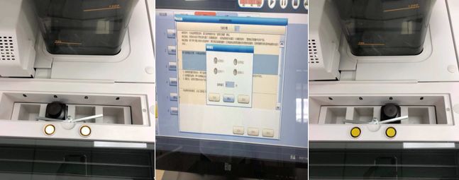 2、取掉干净底物瓶进行底物瓶1底物针1排空10次,底物瓶2底物针2排空10次,排空时底物1和2位置会有液体回流,用无毛絮的纸小心擦干(因无多余的空底物瓶)。