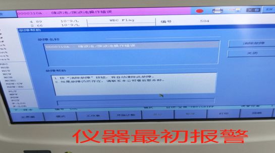 客户电话告知BC-5800仪器在样本测试过程中突然报警0000310A 储液池/废液池操作错误,仪器停止工作。