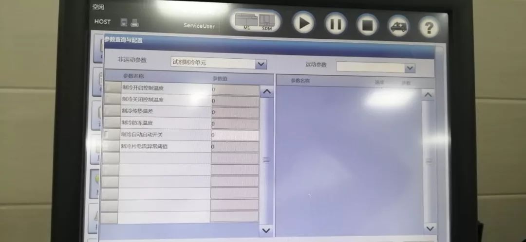 1、首先根据故障解析,怀疑试剂制冷板与主控板之间的通讯线连接异常,所以对试剂制冷板,主控板以及12V30A电源板所有的接口重新插拔,然后开机观察,发现故障依旧;多次尝试均未解决问题;然后检查仪器参数配置,发现试剂制冷的参数均为0 ,而且使用工程师权限和研发权限往里面写参数,都写不进去。